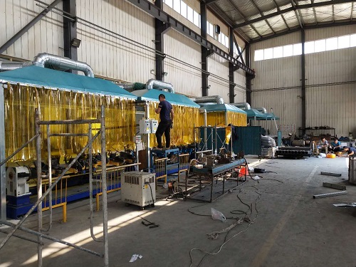 该车间主要烟尘来源为自动焊接,机器人焊接烟尘量较大且为持续性焊接,工作时间较长。这种焊接方式收集需要十分注重,经我方建议选了滤筒除尘器进行净化处理。